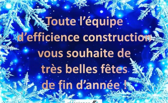 Toute l’équipe d’Efficience Construction vous souhaite de très belles fêtes de fin d’année Prenez soin de vous et vôtres ! Fêtes de fin d’année